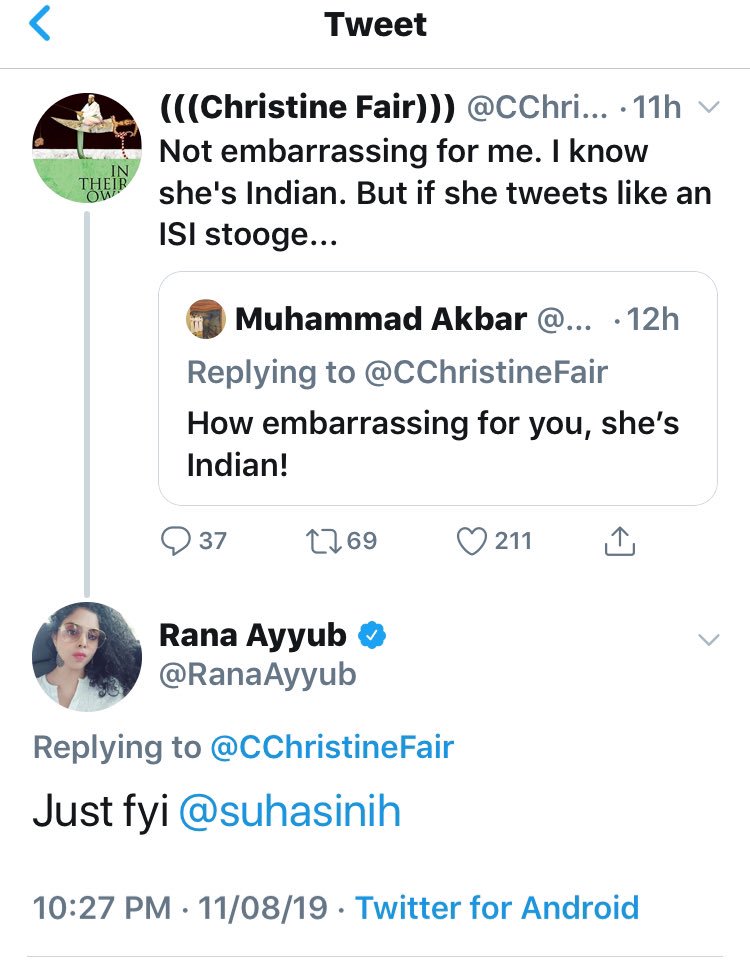 Christine Fair insinuating that Rana Ayyub is an ISI stooge