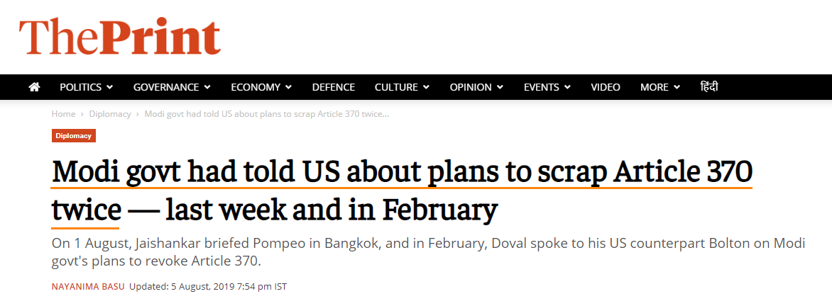 He brings up a 2016 article by Karan Singh, son of Maharaja Hari Singh, erstwhile King of Jammu & Kashmir who signed the Instrument of Accession. Congress leader Karan Singh, too, had then said that stating that Jammu and Kashmir is not an international matter will dilute India’s position on it. Amusingly, in a statement released today, Karan Singh has actually welcomed the step.