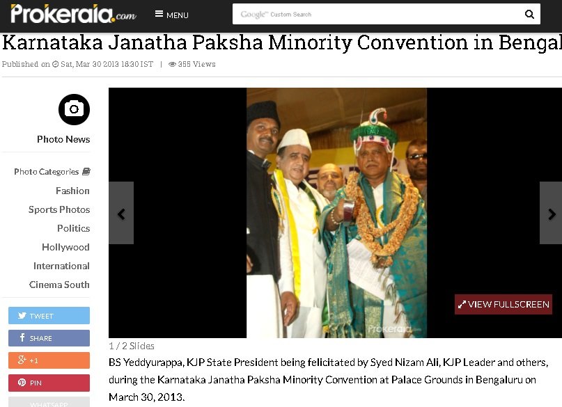The first image shared by Siddaramaiah is actually a picture of an event organized by the erstwhile Karnataka Janata Paksha (KJP). The event was a Minority Convention organized in Bangalore on March 30, 2013. KJP was the party formed by Yediyurappa after he split from the BJP.