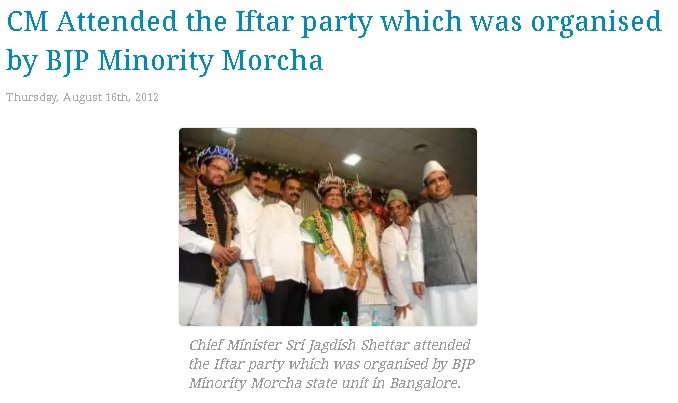 The second image in, which former Chief Minister Jagdish Shettar can be seen is from an Iftar party organized by BJP Minority Morcha state unit in Bangalore.