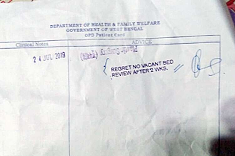 Note of RG Kar hospital regretting unavailability of bed