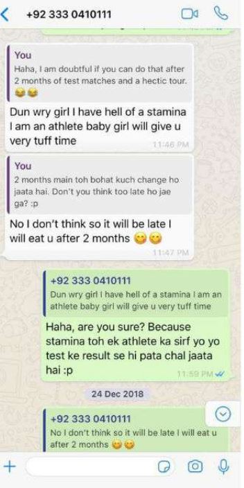 SS of Imam-ul-Haq’ alleged Whatsapp conversation with various girls