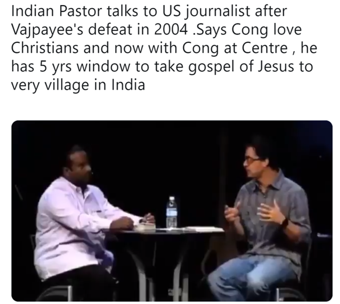In 2004, when BJP, under Prime Minister Vajpayee, lost election and Congress came back into power, an Indian Pastor narrated to a foreign interviewer the following details –