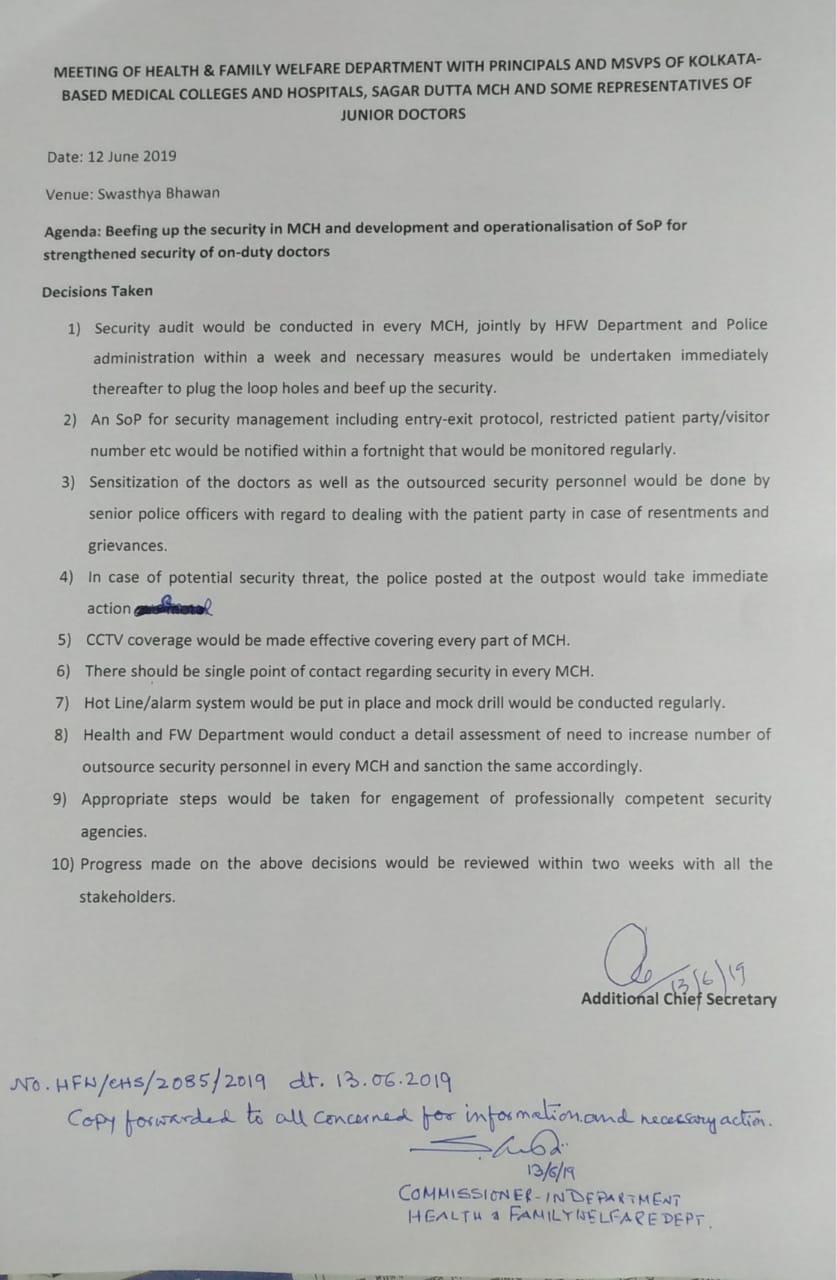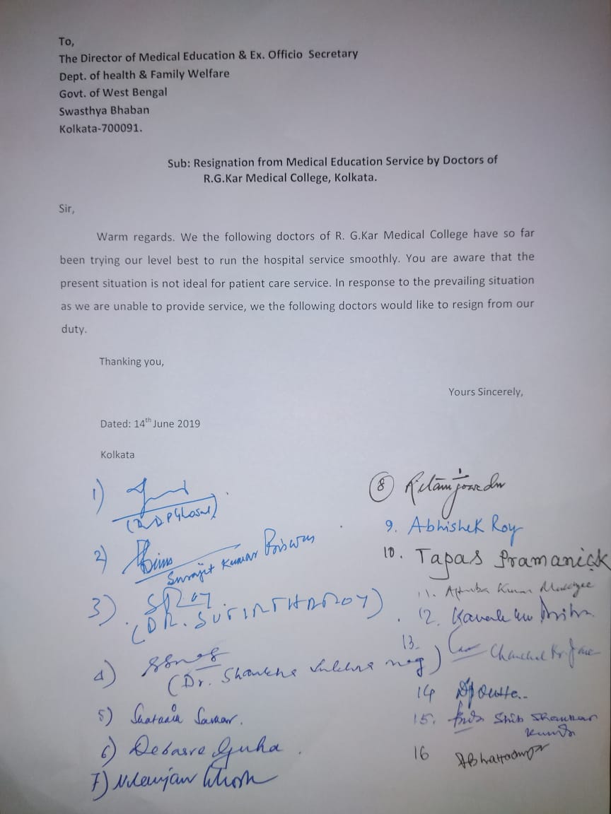 West Bengal Chief Minister showing complete apathy towards the interns attacked in NRS hospital had given an ultimatum to agitating doctors to get back to work or face consequences. She had said, “Policemen die in the line of duty but the police don’t go on a strike”.
