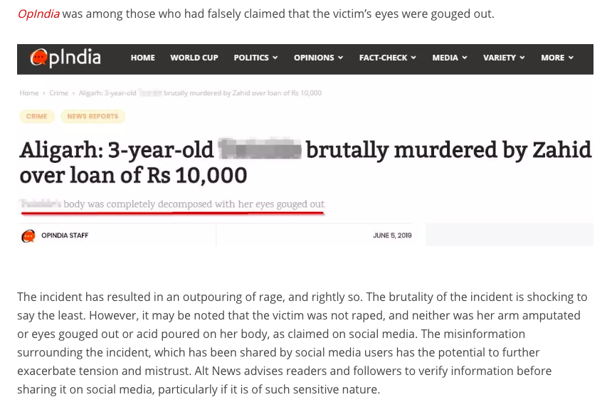 AltNews report on Aligarh case