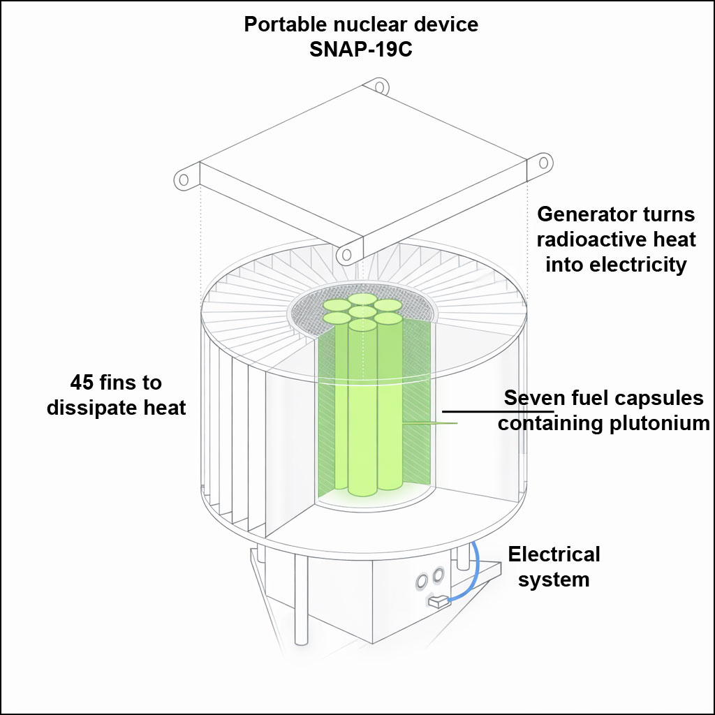The plutonium generator was critical because conventional power sources could not function reliably in such conditions for long durations.