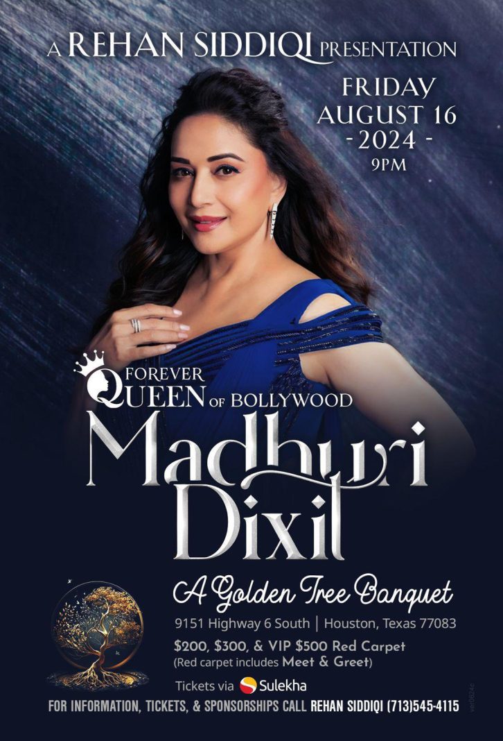 The events section of the Sulekha website has tickets available for Madhuri Dixit’s US tour in August, but it does not include any event in Houston, Texas. It mentions concerts in New York on 8 August, Virginia on 10 August, Atlanta on 11 August and New Jersey on 15 August. This tour is organised by World Star Entertainment, an event management company that organises programs featuring Bollywood actors, singers etc. The company is run by one Atique Sheikh.