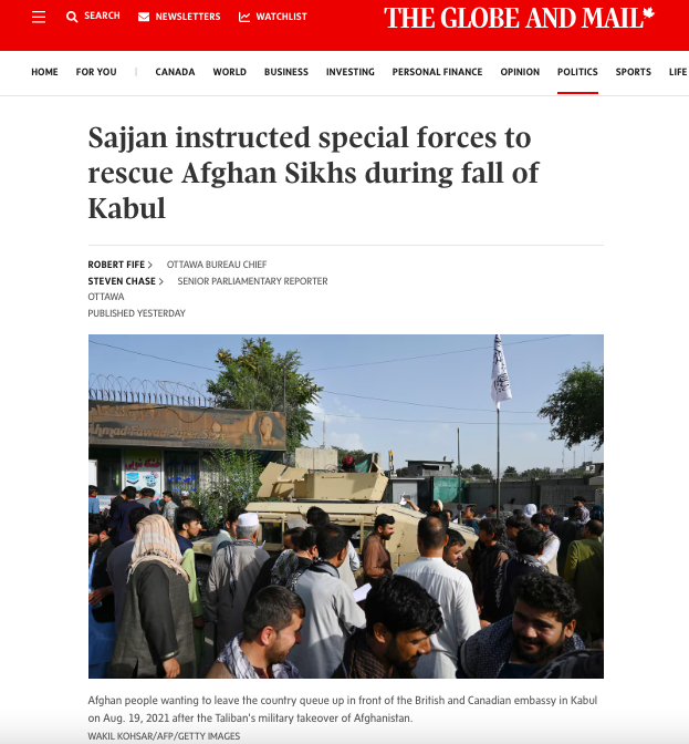 “Mr. Sajjan also relayed location information and other details about the Sikhs to the military as special operation forces worked to meet up with the group. The information was passed to him from a Canadian Sikh group that was in contact with these Afghan Sikhs,” the report reads.