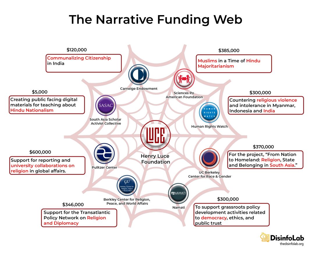 However, he was not the only participant. Examining events and activities outside India leading up to and during the elections revealed a key pattern that connected all these events, individuals, and narratives—common funding.