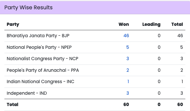 The Bhartiya Janata Party has begun its victory march from the land of the rising sun—Arunachal Pradesh. Under the leadership of Chief Minister Pema Khandu, the BJP won a landslide victory in the state. The party won 46 of the 60 seats in the state legislative assembly. Congress party which dominated Arunachal Pradesh’s politics until ten years ago has been nearly wiped out winning just 1 Bameng seat in East Kameng district.
